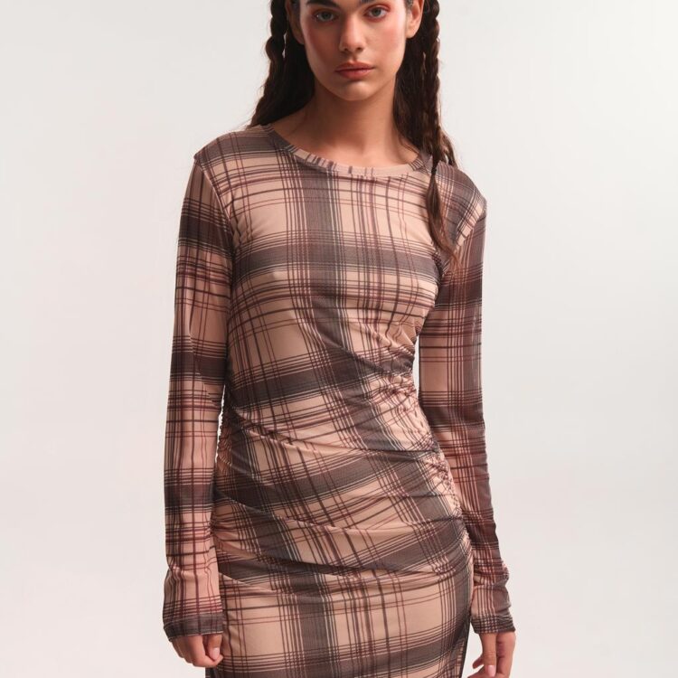 Φόρεμα μακρύ με καρό print – Plaid Motion Dress