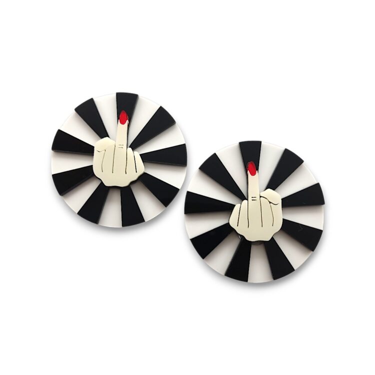 Για όσες στιγμές δεν κάνεις πίσω και δεν σκοπεύεις να το κρύψεις. Τα Target F*ck Off Earrings είναι χειροποίητα σκουλαρίκια