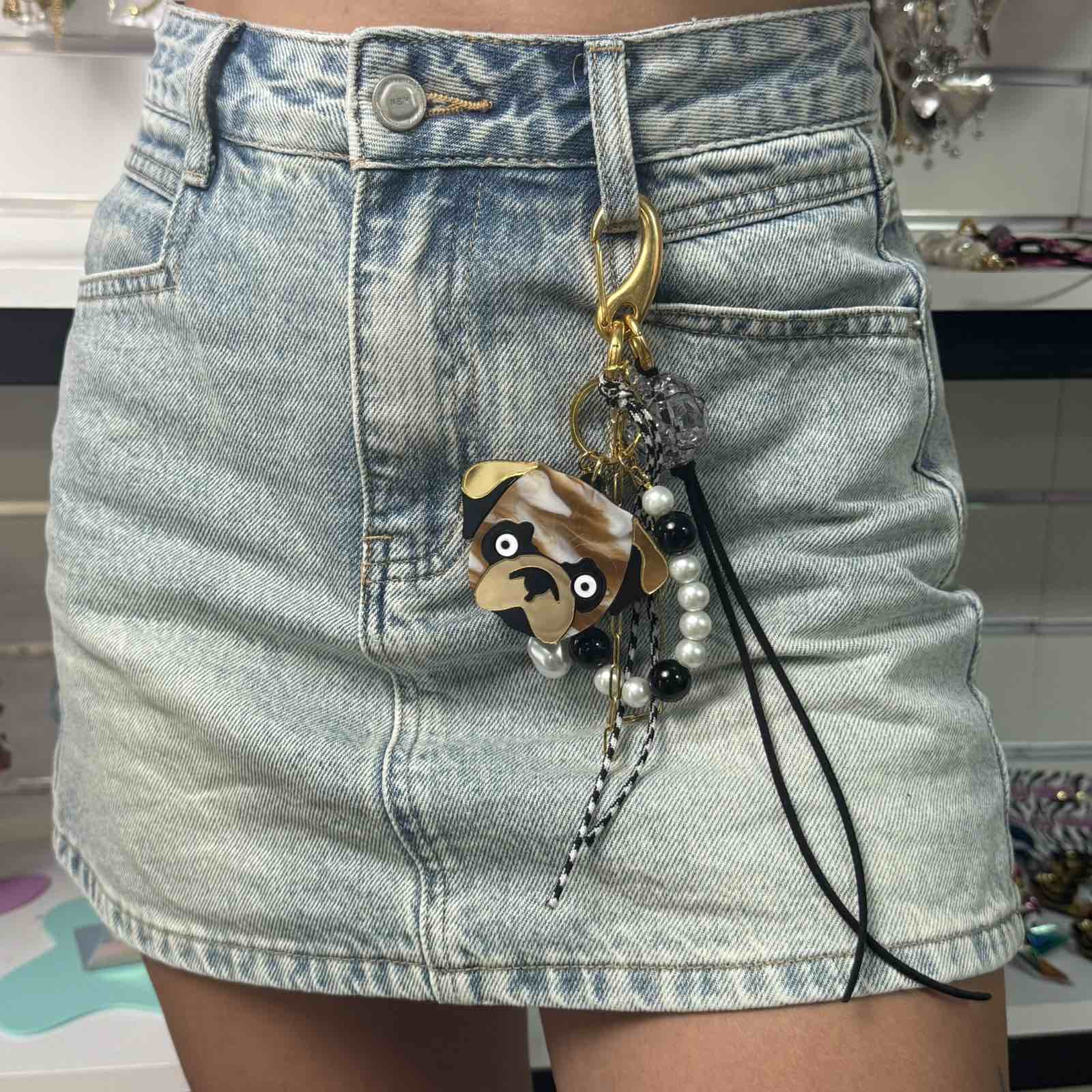 Μπρελόκ Pug με μαργαριτάρια – Fashion αξεσουάρ για τσάντα ή τζιν