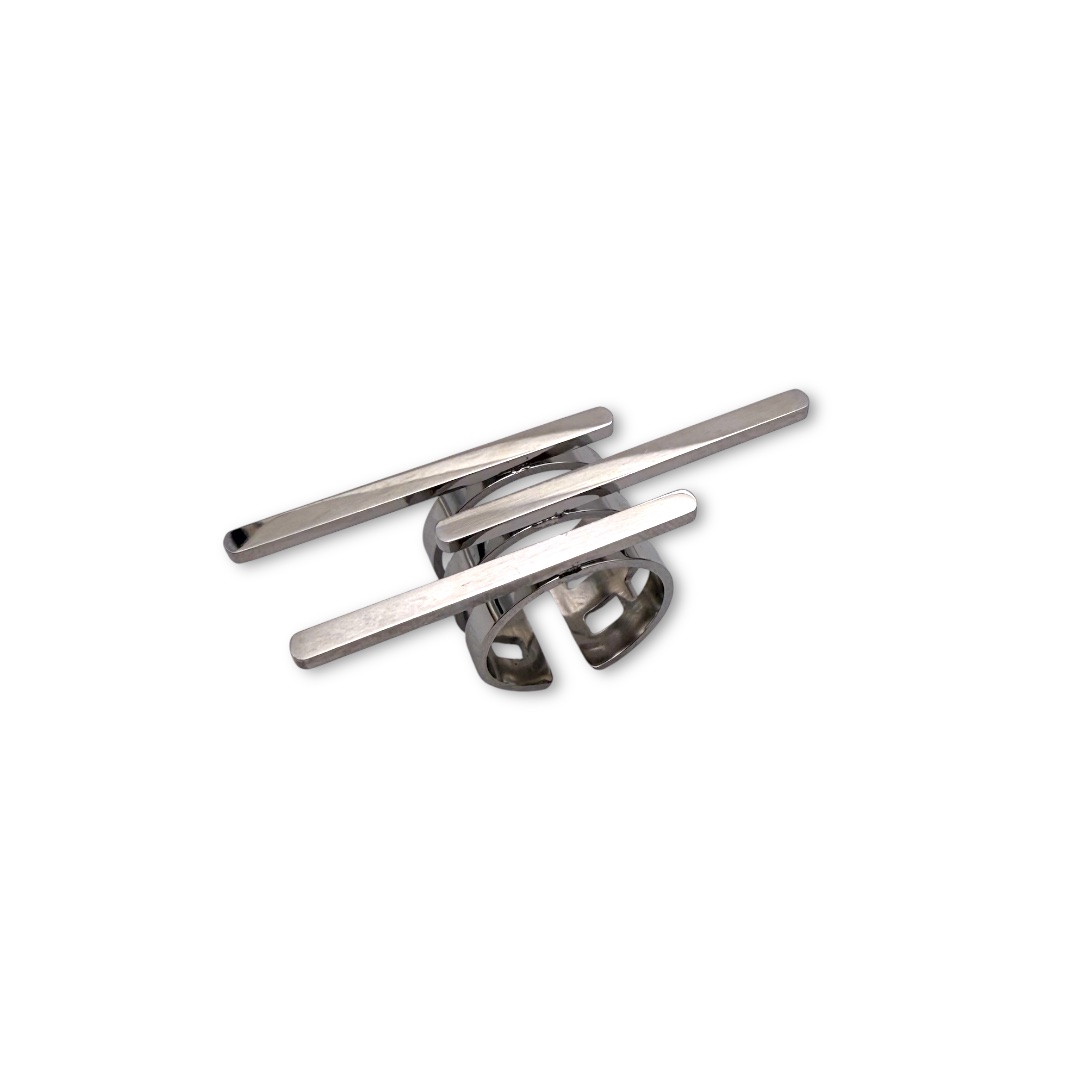 Styling tip: Συνδύασέ το με total white ή total black outfits για να τονιστεί ο γραμμικός του χαρακτήρας ή φόρεσέ το με άλλα ασημί δαχτυλίδια για layered αποτέλεσμα.