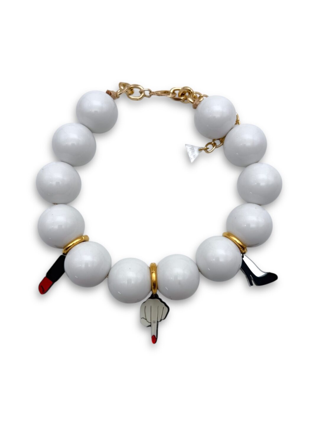 Το Badass Barbie Λευκό Κολιέ είναι το απόλυτο fashion statement για κάθε queen που ξέρει τι θέλει. Ακρυλικές γυαλιστερές χάντρες σε λευκό, bold plexiglass charms (lipstick, γόβα, μεσαίο δάχτυλο με κόκκινο νύχι) και attitude που δεν περνά απαρατήρητο. Ιδανικό για όσες γουστάρουν να τα λένε… και με το στιλ τους!