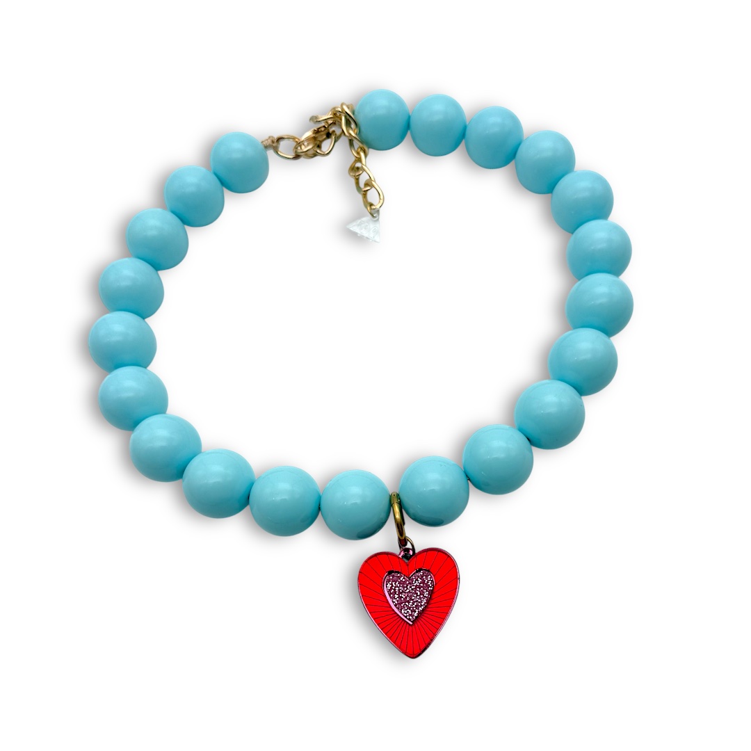 Το Beadline βραχιόλι φέρνει στο προσκήνιο τη δύναμη της λεπτομέρειας. Οι γαλάζιες χάντρες δημιουργούν μια αρμονική ροή γύρω από τον καρπό, ενώ η έντονη plexiglass καρδιά στη μέση δίνει την ανατρεπτική πινελιά που κάνει τη διαφορά. Ένα χειροποίητο κόσμημα που ενώνει το funky με το κομψό.