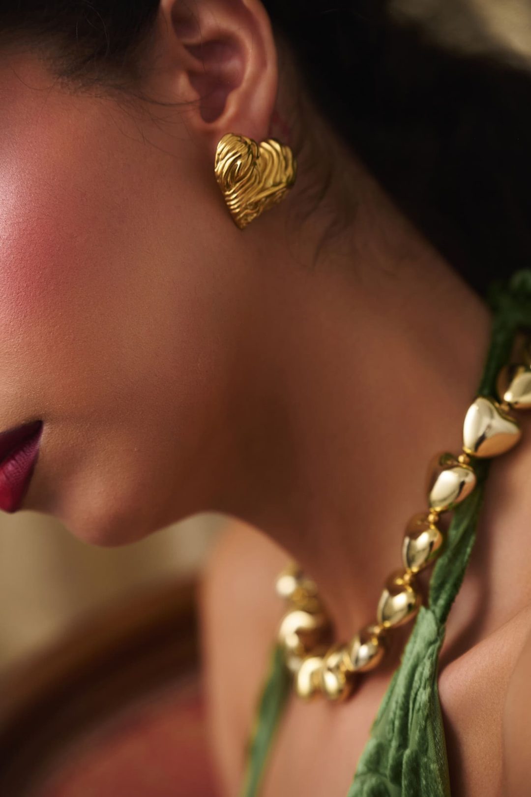 Απογειώστε τη μοναδικότητα του στυλ σας με τα Choco Gold Heart Earrings! Αυτά τα σκουλαρίκια, με την ιδιαίτερη σχεδίαση που θυμίζει λιωμένη σοκολάτα, φέρνουν μαζί τη διαχρονική κομψότητα της χρυσής απόχρωσης με ένα παιχνιδιάρικο twist. Το ανάγλυφο σχέδιο τους τα καθιστά ιδανικά για ξεχωριστές εμφανίσεις.