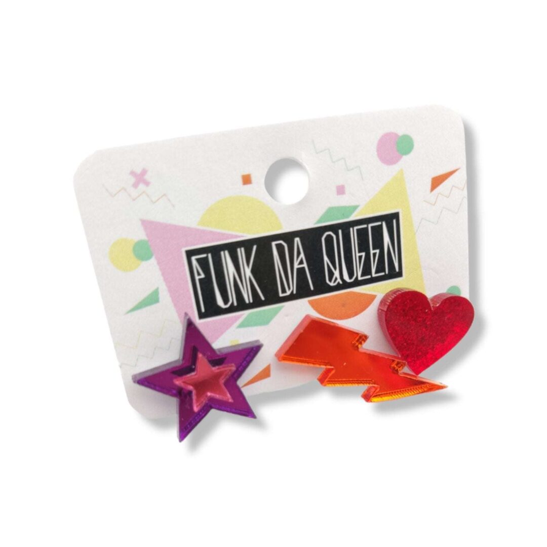 Τριπλέτα – φωτιά! Η Funk da Queen σας δίνει την επιλογή να αγοράσετε τρία σχέδια, δίνοντάς σας την ευκαιρία να φοράτε έναν διαφορετικό συνδυασμό καθημερινά. Ένα διπλό αστέρι, ένας κεραυνός και μια glitter καρδιά. Εμπλουτίστε το καθημερινό σας casual στυλ!