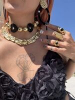 Το Eclipse Choker είναι το κολιέ που καθηλώνει. Οι χρυσές επιφάνειες με υγρό μεταλλικό εφέ δημιουργούν ένα γλυπτό κόσμημα που παίζει με το φως, δίνοντας έντονο χαρακτήρα σε κάθε εμφάνιση. Ένα statement piece που μπορεί να φορεθεί όλες τις σεζόν.