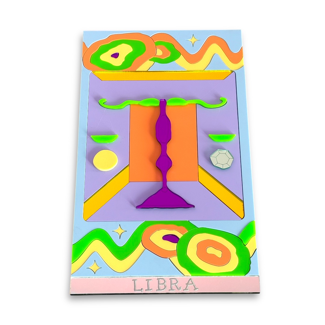 Το Libra Wall Art είναι ένα χειροποίητο επιτοίχιο διακοσμητικό από plexiglass, εμπνευσμένο από το ζώδιο του Ζυγού. Η ζυγαριά συμβολίζει την ανάγκη για ισορροπία και αρμονία, ενώ τα έντονα psychedelic χρώματα φέρνουν funky αισθητική και ζωντάνια. Ένα art piece που εκφράζει την αγάπη του Ζυγού για την ομορφιά, την κομψότητα και τη δικαιοσύνη.