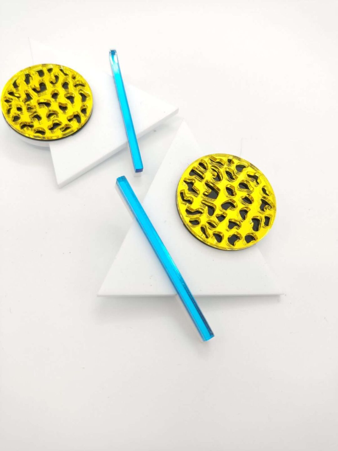 Μια τριλογία από σκουλαρίκια εμπνευσμένα από το σχέδιο Memphis . Απλά γεωμετρικά σχήματα. Επίπεδα χρώματα συνδυασμένα σε έντονες, αντίθετες παλέτες. Στυλιζαρισμένα γραφικά μοτίβα που ορίζονται από ασπρόμαυρες ρίγες και αφηρημένα squiggles – αυτά είναι τα συστατικά του σχεδιασμού εμπνευσμένου από το Memphis, που τροφοδοτείται από επιρροές από προηγούμενα κινήματα όπως η Pop Art και το Art Deco. Το Memphis έχει ως βάση ένα ροζ ματ τρίγωνο και από πάνω βλέπουμε έναν κύκλο animal print σε λευκό ματ και ένα stick. Δείτε επίσης: Memphis See-Through και Memphis Zic-Zac .