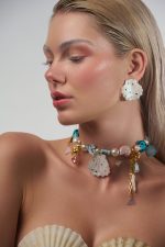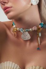 Ένα κόσμημα σαν όνειρο που ξέφυγε από τον βυθό. Το Mermaid Dreams είναι ένα φαντασμαγορικό, χειροποίητο κολιέ γεμάτο γοργονίσια γλυκύτητα: κεραμικά δελφινάκια και αστερίες, baroque μαργαριτάρι, επιχρυσωμένα μεταλλικά charms, γυάλινες καρδιές, κοχύλια και πέρλες σε παστέλ αποχρώσεις δημιουργούν ένα μοναδικό καλοκαιρινό σύμπαν γεμάτο χρώμα, υφή και παραμύθι.