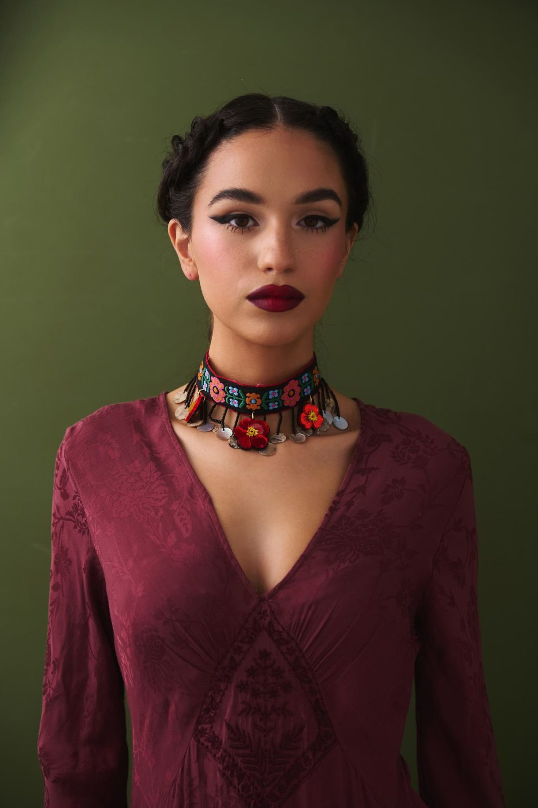 Το Pansy Choker είναι ένα χειροποίητο κέντημα που αποπνέει boho vibes. Με τρεις πανσέδες σε αρμονικά τοποθετημένα μοτίβα, αυτό το τσόκερ προσφέρει μια μοναδική λουλουδένια αισθητική, ιδανική για να δώσεις μια ρομαντική και ανεπιτήδευτη πινελιά στις εμφανίσεις σου.