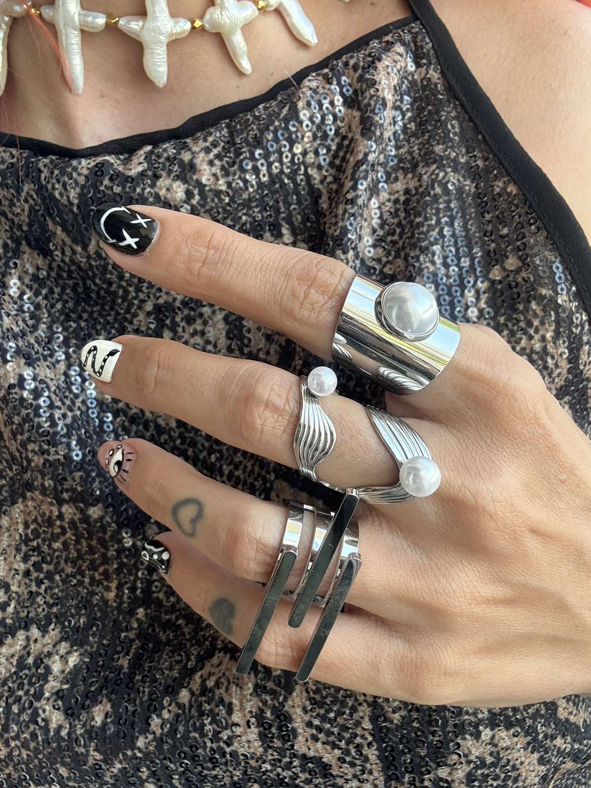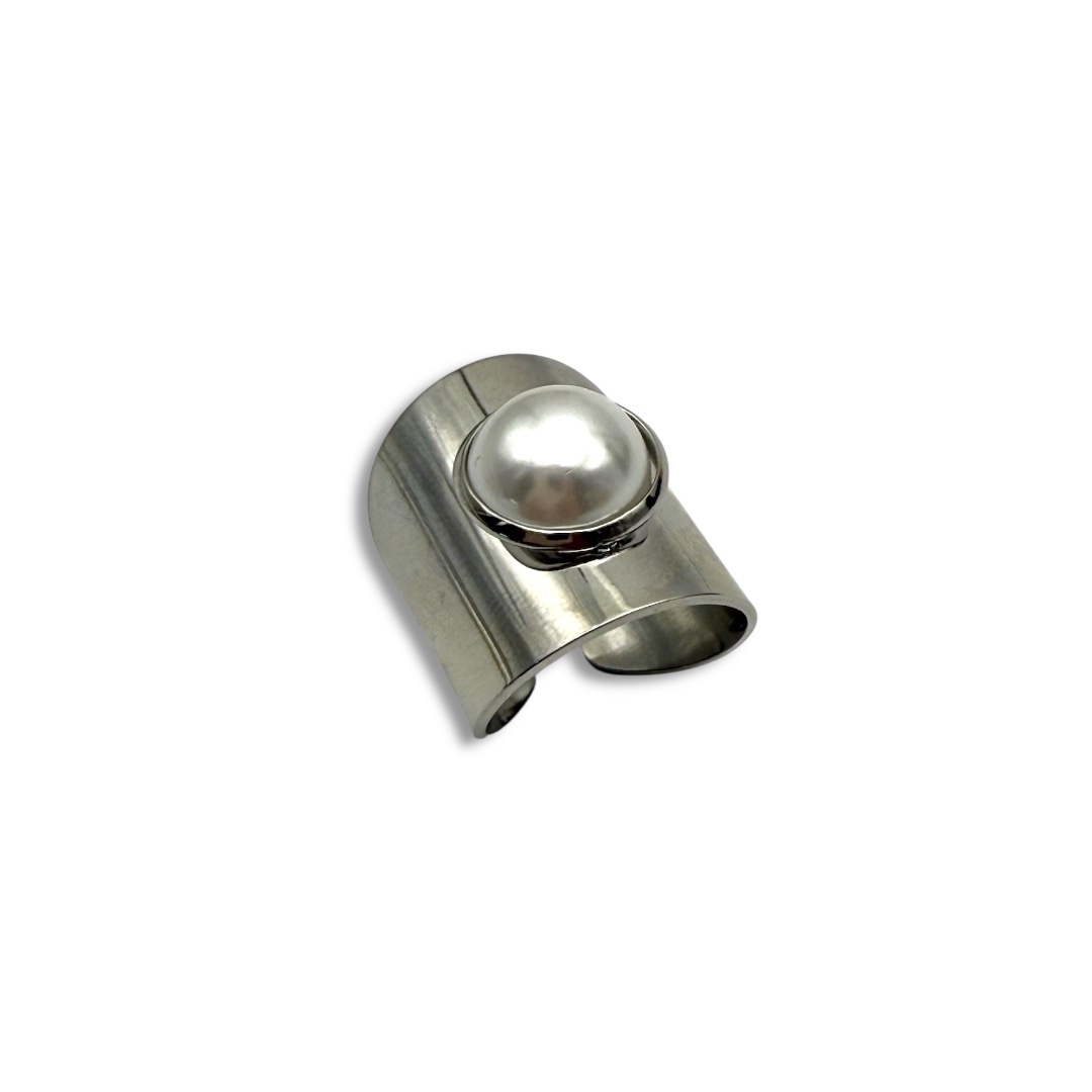 Pearl Cuff Ring – Δαχτυλίδι cuff από ατσάλι με λευκή πέρλα