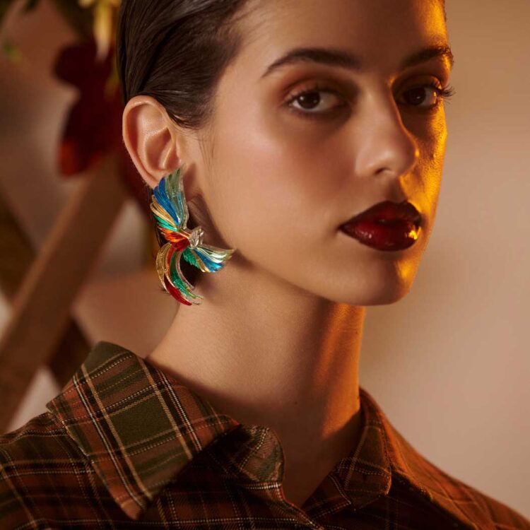 Μια καλλιτεχνική φιγούρα μιας από τις πιο όμορφες ζωικές δημιουργίες, σε κρεμαστό σκουλαρίκι με ειδικό κούμπωμα από πέτρα μαργαριταριού. Σχεδιασμένο με εντυπωσιακά χρώματα του μπλε και του λευκού, κατάλληλο για καλοκαιρινά και αέρινα outfits και μαγικές νησιώτικες βόλτες για κοκτέιλ.