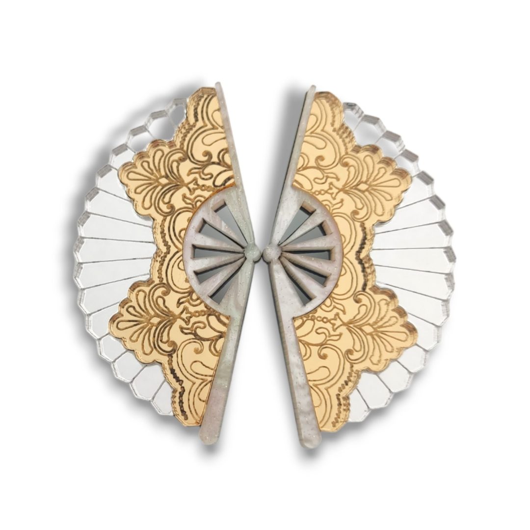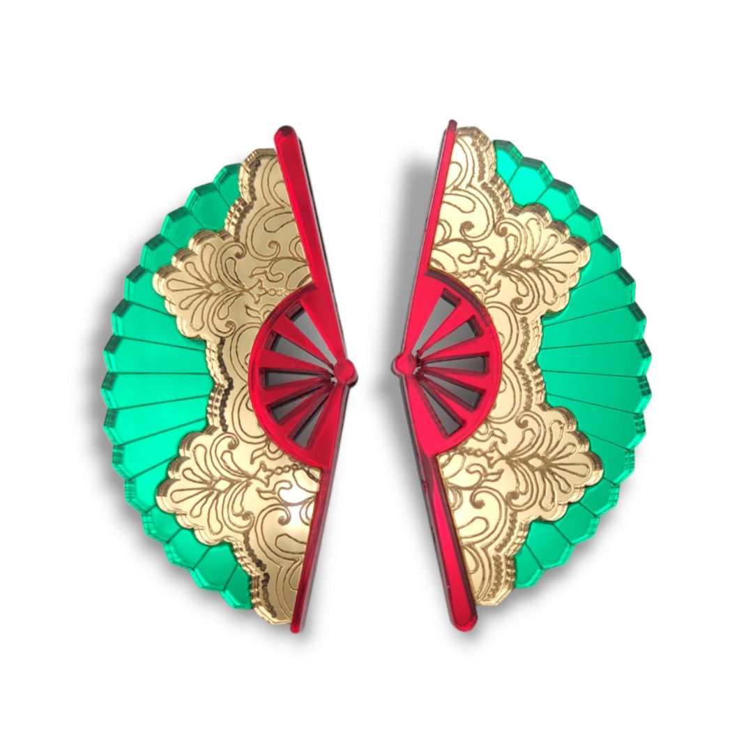 Ένα κομμάτι που μοιάζει να ξεπήδησε από γιαπωνέζικη γκραβούρα. Τα Ventalia είναι ένα χειροποίητα σκουλαρίκια από plexiglass, εμπνευσμένο από τον παραδοσιακό ιαπωνικό ανεμιστήρα. Οι έντονες αποχρώσεις, το laser-cut μοτίβο και η γεωμετρία του σχεδίου το καθιστούν κοσμήμα-εικόνα: δυνατό, θεατρικό και με cultural βάθος.