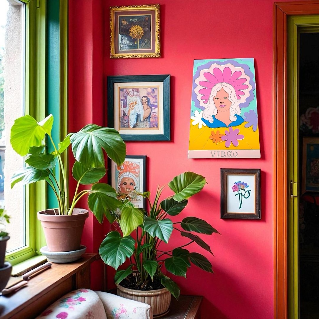 Το Virgo Wall Art είναι ένα χειροποίητο επιτοίχιο διακοσμητικό από plexiglass, εμπνευσμένο από το ζώδιο της Παρθένου. Η γυναικεία φιγούρα με τα λουλούδια αποπνέει αγνότητα, γαλήνη και φυσική ομορφιά, ενώ τα φωτεινά χρώματα αποτυπώνουν την ανάγκη του ζωδίου για ισορροπία και αρμονία. Ένα art piece που εκφράζει την προσεγμένη και ευαίσθητη φύση της Παρθένου με funky αισθητική.