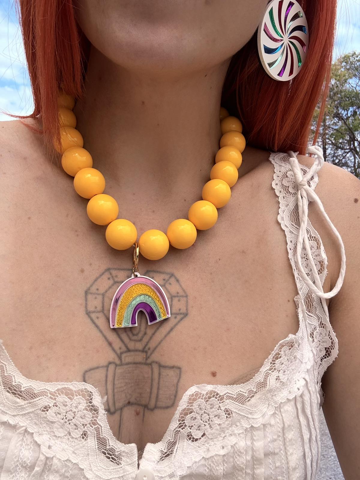 Beadline Yellow | Rainbow Beaded Necklace with Plexiglass Charm