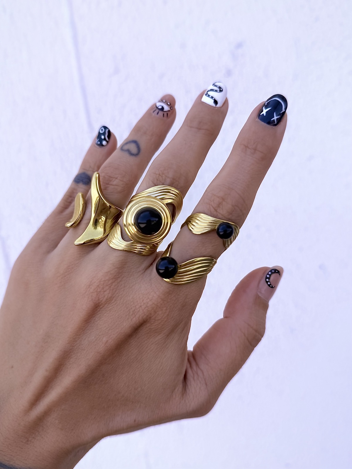 The Flow Ring is crafted from stainless steel with an organic, sculptural form that wraps elegantly around the finger. Its minimal yet expressive design makes it ideal for women who love modern and timeless jewelry. Durable and finished in gold, it brings a blend of elegance and boldness to any look.