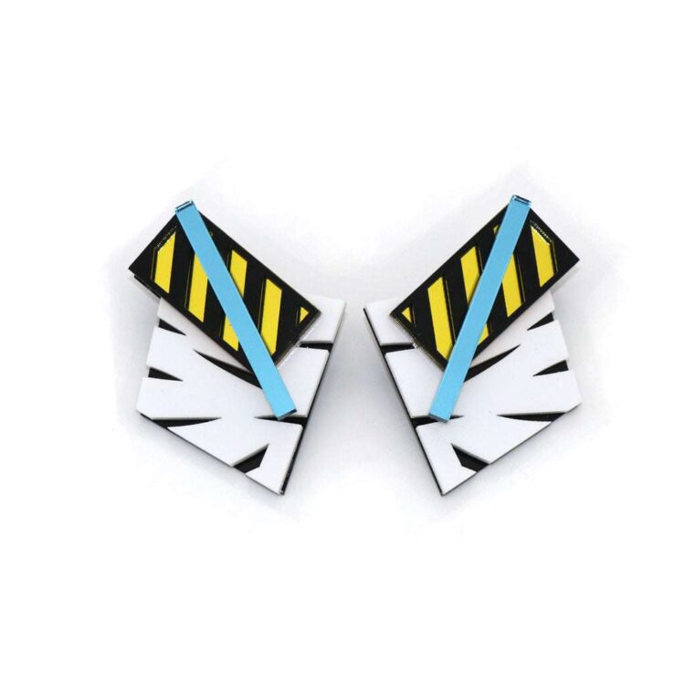 Do not be afraid to open and pass the gates and enter our magical world. This earring expresses the need we have you to be introduced into our philosophy and ideology of our art. At the same time, minimal and geometric, this design consists of the characterictic neon color and mirror colors too. Gate is a hinged barrier used to close an opening in a wall or hedge.